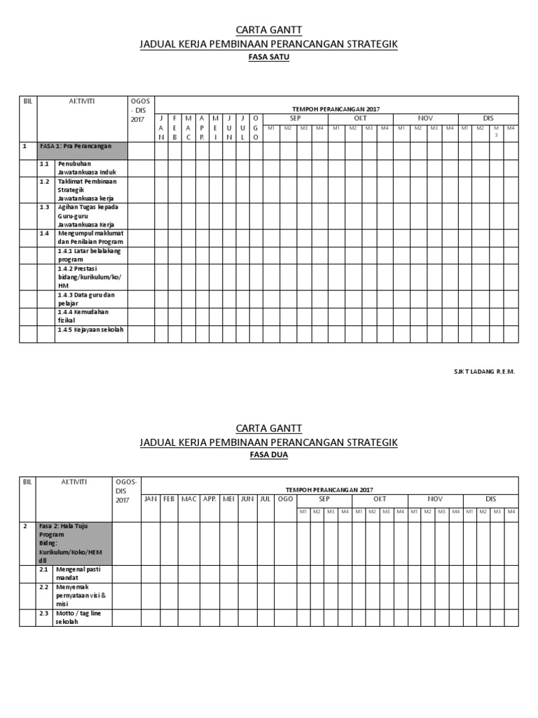 Carta Gantt Jadual Kerja Pembinaan Perancangan Strategik Pdf